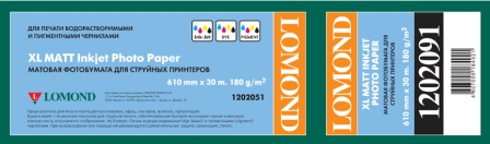 Бумага для плоттера LOMOND XL ролик 610*50,8мм/180, 30 метров матовая