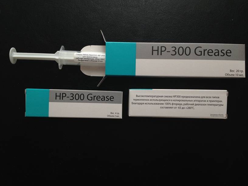 Универсальная смазка для термопленок (термосмазка) узла закрепления изображения лазерных печатающих устройств производства CANON и HEWLETT PACKARD. Применяется для большей части модельного ряда техники с различной скоростью печати, производимой CANON и HEWLETT PACKARD. Белая, густая, расфасовано в шприц по 1ml, 2гр. Оригинал, MOLYKOTE.