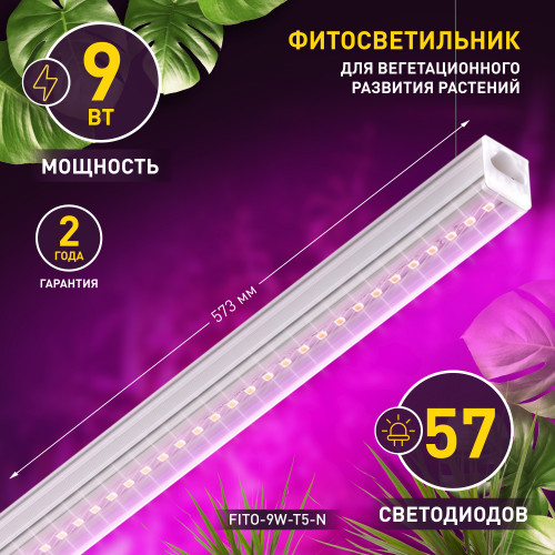 Фитосветильник линейный 9Вт T5 573x21x25мм красно-синий спектр IP20 Эра
