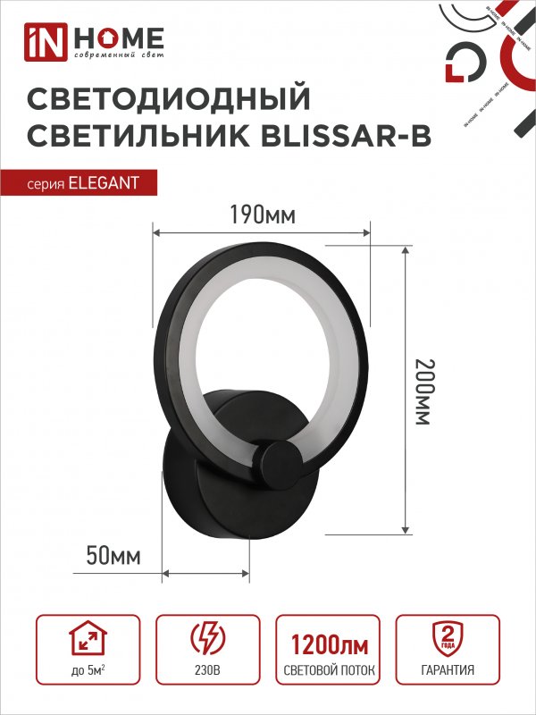 Светильник светодиодный бра ELEGANT BLISSAR-B 15Вт 3000-6500K 1050Лм STEP COLOR черный InHome