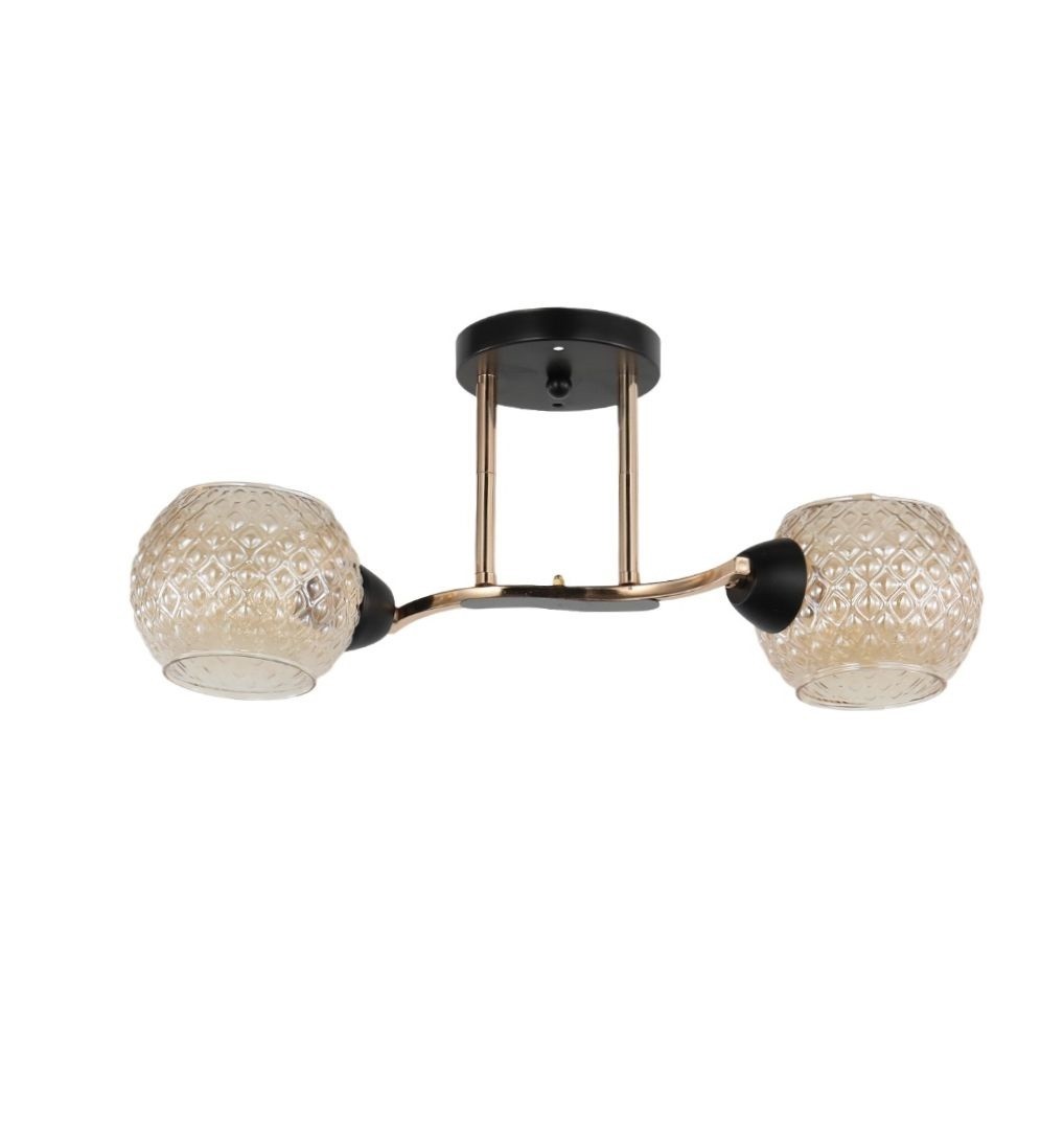 Люстра Модерн 2хE27 ЭкономСвет 12208/2BK+FGD AMB черный/золото / янтарный