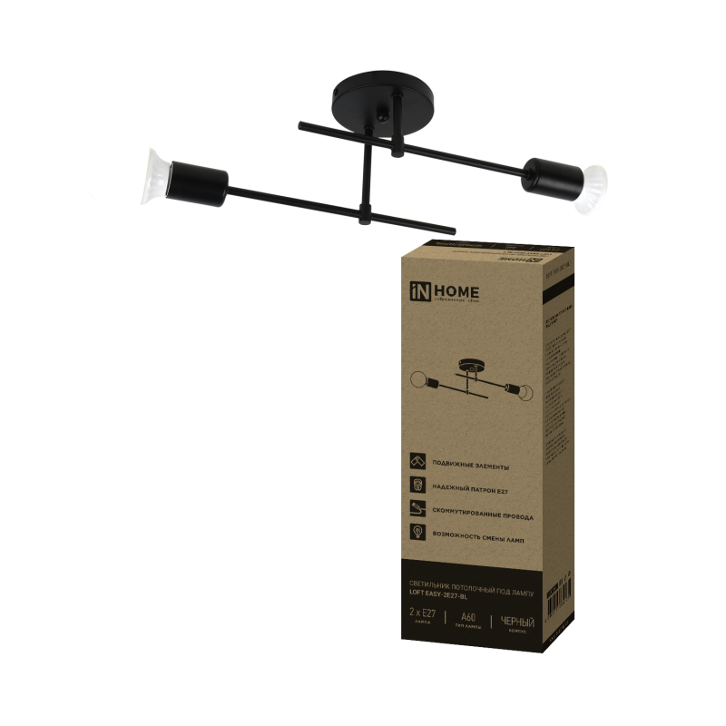Люстра LOFT 2хЕ27 EASY-BL 440x120x144 черный InHome