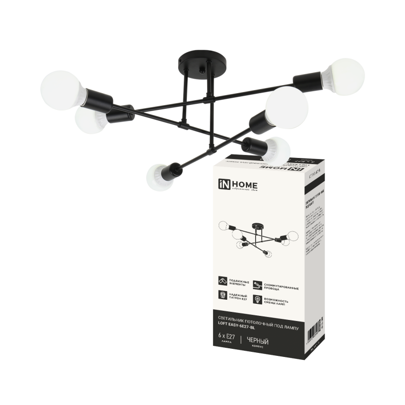 Люстра LOFT 6хE27 AURA EASY-BL 520x520x239 черный InHome