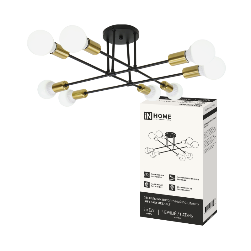 Люстра LOFT 8хE27 AURA EASY-BLT 600x600x219 черный латунь InHome