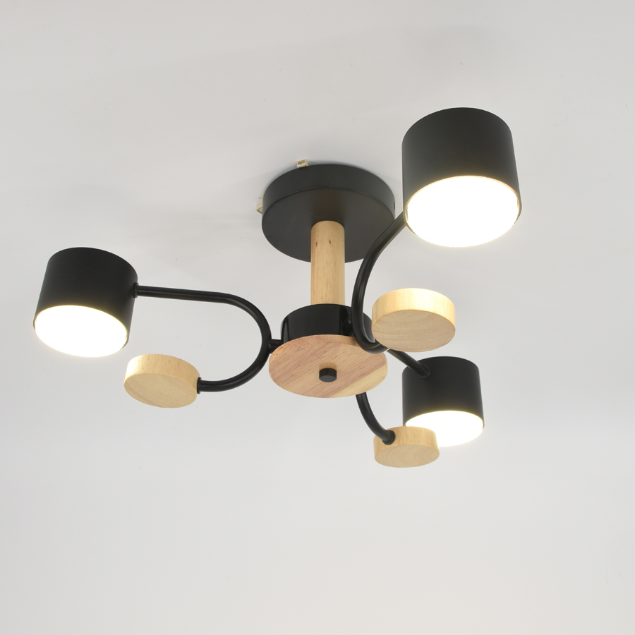 Люстра потолочная 3хGX53 Альберо Черная+Дерево 515х450х200мм General