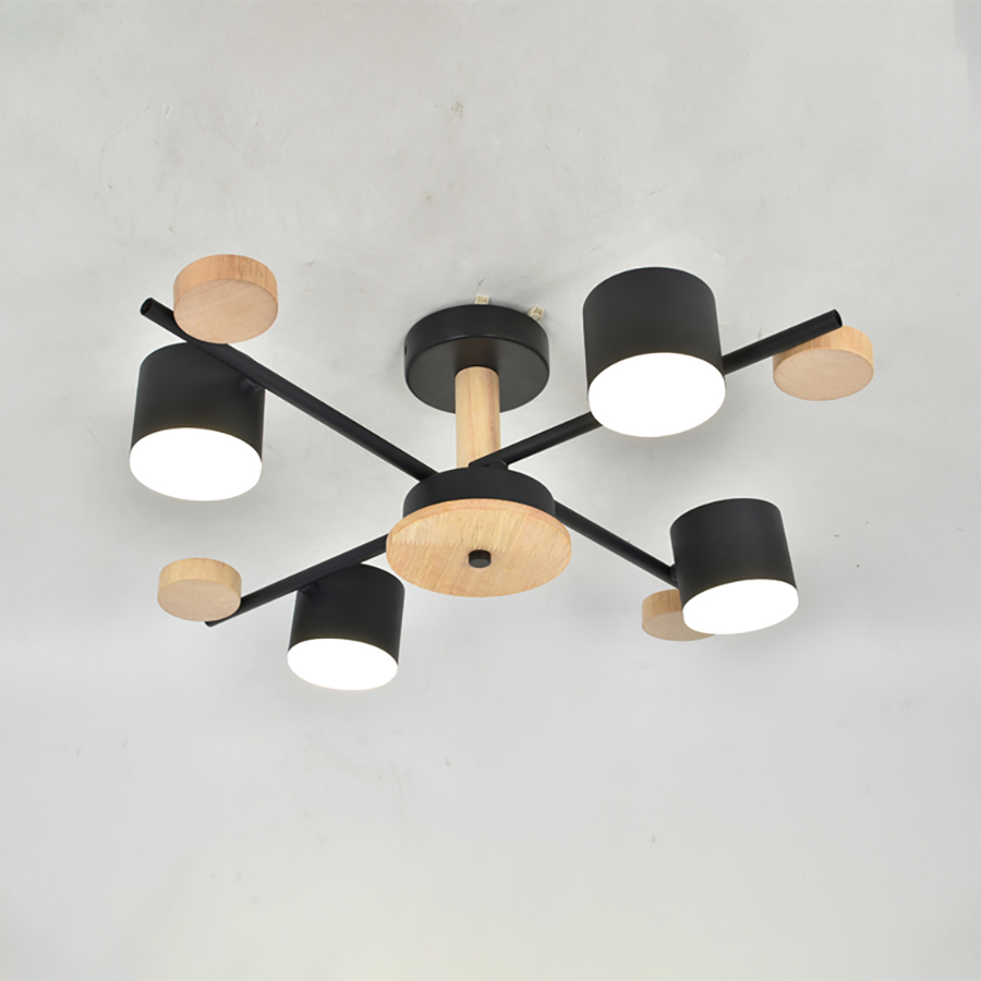 Люстра потолочная 4хGX53 Венто Черная+Дерево 560х560х175мм General