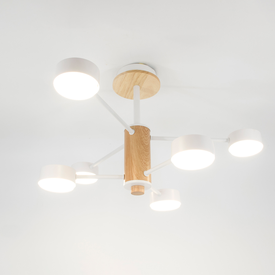 Люстра потолочная 6хGX53 Элизиум Белая+Дерево 600х665мм General