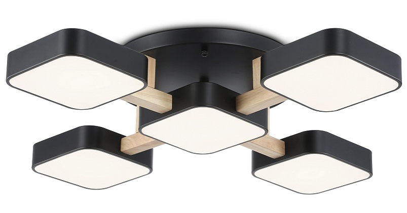 Светильник диодный 90Вт Ambrella FL4883/5 BK/WD черный/дерево 3000-6000K 7200Лм 675*675*110мм (без ПДУ)