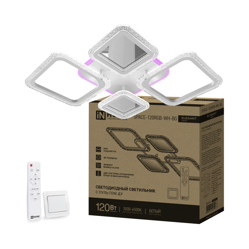 Светильник диодный Inhome ELEGANT 120Вт SPACE 3000-6500K+RGB 8400Лм 530х530х125мм пульт белый (5)