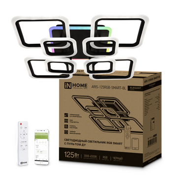 Светильник диодный InHome ELEGANT 125Вт ARIS-RGB-BL 3000-6500K 8800Лм 585х585х115мм пульт SMART черный (1)