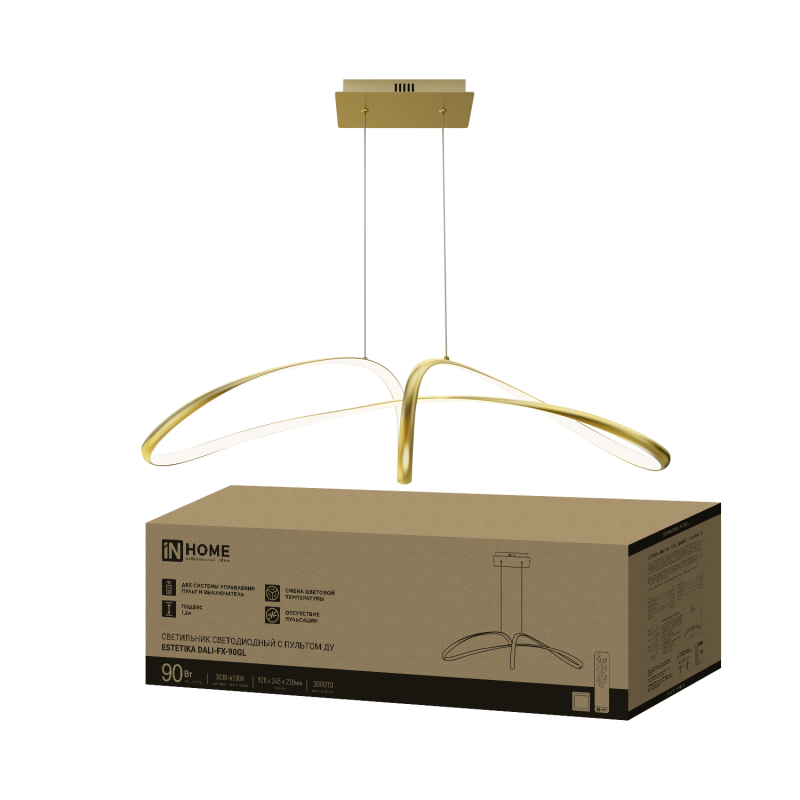 Светильник диодный InHome ESTETIKA 90Вт DALI-FX-90GL 3000-6500K 5400Лм 920х245x230мм подвес 1.2м пульт золото