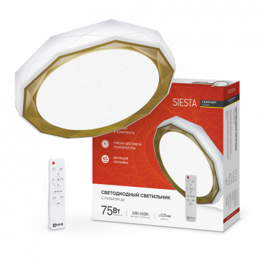 Светильник светодиодный COMFORT SIESTA 75Вт 230В 3000-6500K 6000Лм 500x100мм с пультом ДУ IN HOME