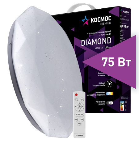 Светильник диодный Космос PREMIUM DIAMOND 75Вт 230В 3000-6500K 6000Лм D350x90мм (5)