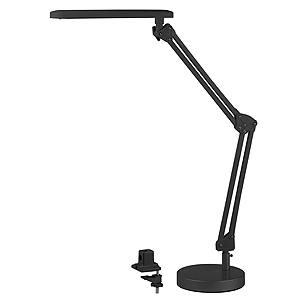 Настольный светильник ЭРА NLED-440-7W-BK со светодиодами (LED) в качестве источников света. Два варианта крепления в комплекте: устойчивое основание и струбцина. Высота плафона регулируется двухсекционной сгибающейся стойкой. Отлично экономит рабочее пространство. Варианты с комбинированным креплением дают возможность выбрать, как будет удобнее использовать светильник - с основанием его можно разместить в любом месте на поверхности стола, со струбциной компактно и надежно закрепить на край.
