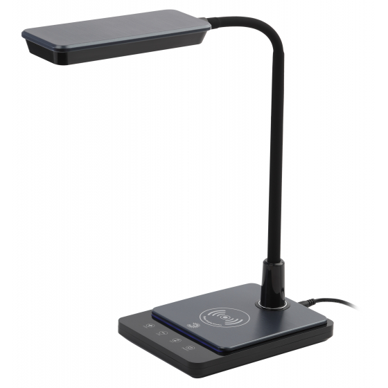 Настольный светильник ЭРА NLED-499-10W-BK со светодиодами (LED) в качестве источников света. Оснащен сенсорным управлением с возможностью выбора цветовой температуры (теплый, нейтральный или холодный свет). Плавный диммер для регулировки яркости. Светильник сохраняет выбранные настройки при включении-выключении. Направление света регулируется наклоном и поворотом плафона в любом направлении. Светильник имеет встроенный модуль Qi для беспроводной зарядки мобильных устройств. Просто положите телефон, поддерживающий функцию Qi, на основание светильника в отмеченной зоне - светильник подзарядит его удобно и быстро!
