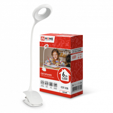 Светильник настольный аккумуляторный диодный прищепка Inhome ССП 22Б 6Вт 6500К 480лм диммер USB белый (48)