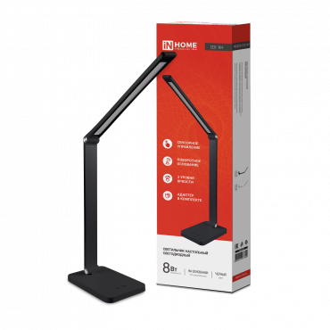 Светильник настольный диодный Inhome ССО 14Ч 8Вт 3000-6500К 480Лм, сенсор-диммер, с адаптером ЧЕРНЫЙ IN HOME