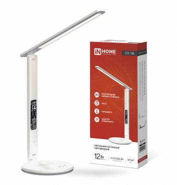 Светильник настольный диодный Inhome ССО-18Б 12Вт 3000-6500К 600Лм сенсор-диммер часы темпер бесп заряд белый (1)