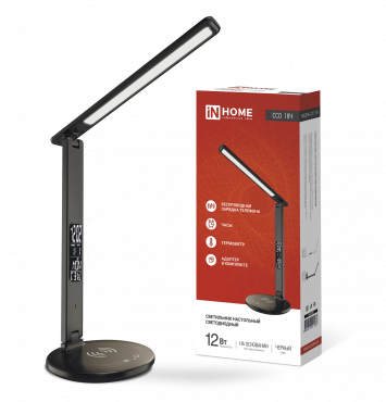 Светильник настольный диодный Inhome ССО-18Ч 12Вт 3000-6500К 600Лм сенсор-диммер бесп заряд часы темпер черный (1)