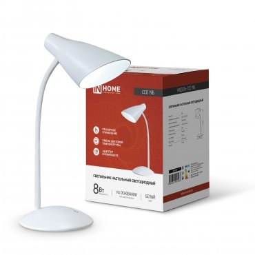 Светильник настольный диодный Inhome ССО 19Б 8Вт 3000-6500К 480Лм сенсор-диммер белый (1)