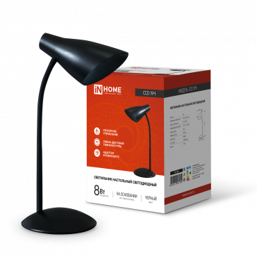 Светильник настольный диодный InHome ССО-19Ч 8Вт 3000-6500К 480Лм сенсор-диммер, с адаптером черный (1)