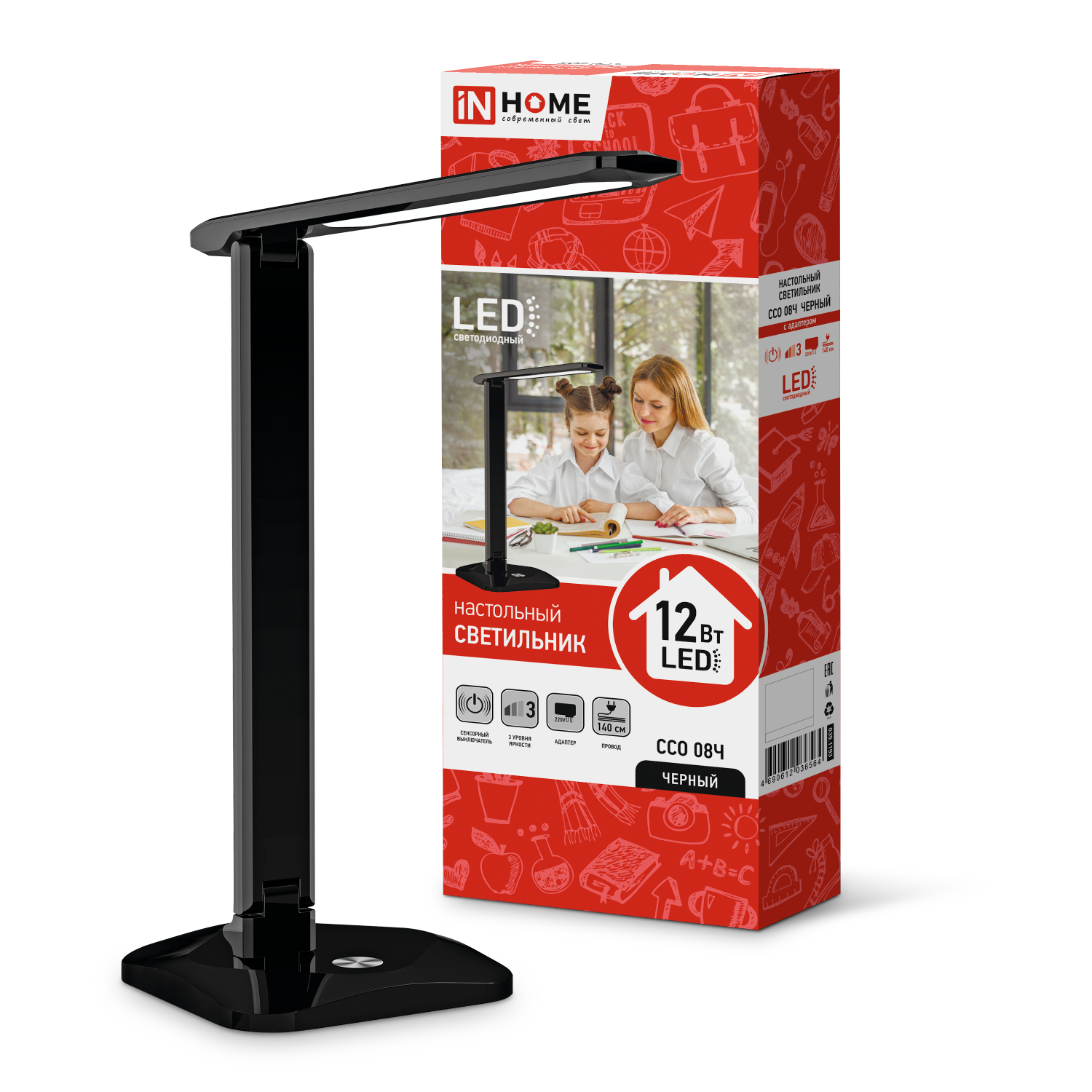 Светильник настольный светодиодный ССО 08Ч 12Вт 600Лм сенсор 3 уровня яркости, с адаптером ЧЕРНЫЙ IN