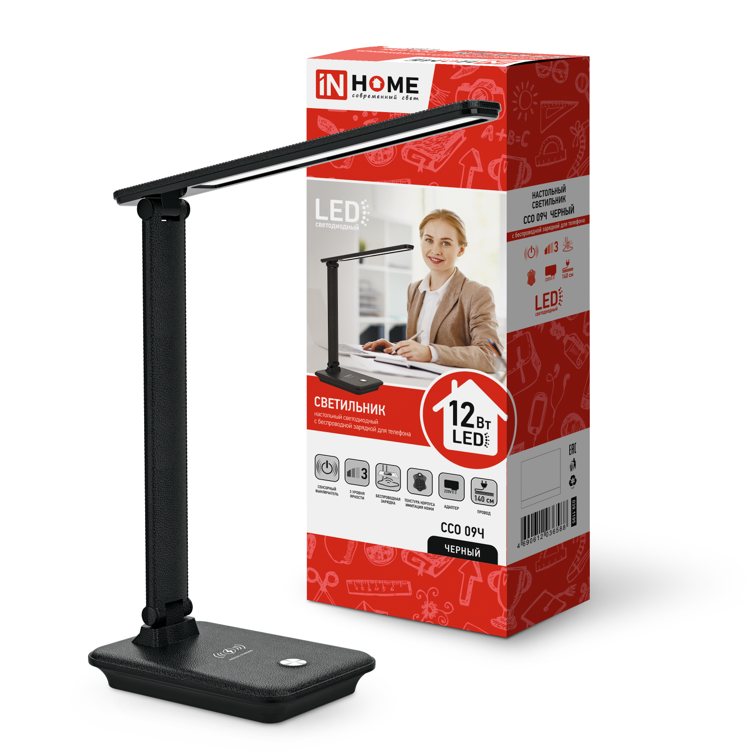 Светильник настольный диодный Inhome ССО 20Ч 12Вт 3000-6500К 640Лм RGB сенсор-диммер черный (1)