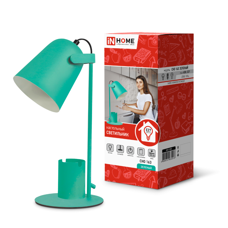 Светильник настольный Е27 InHome СНО-16З органайзер зеленый 40Вт (12)