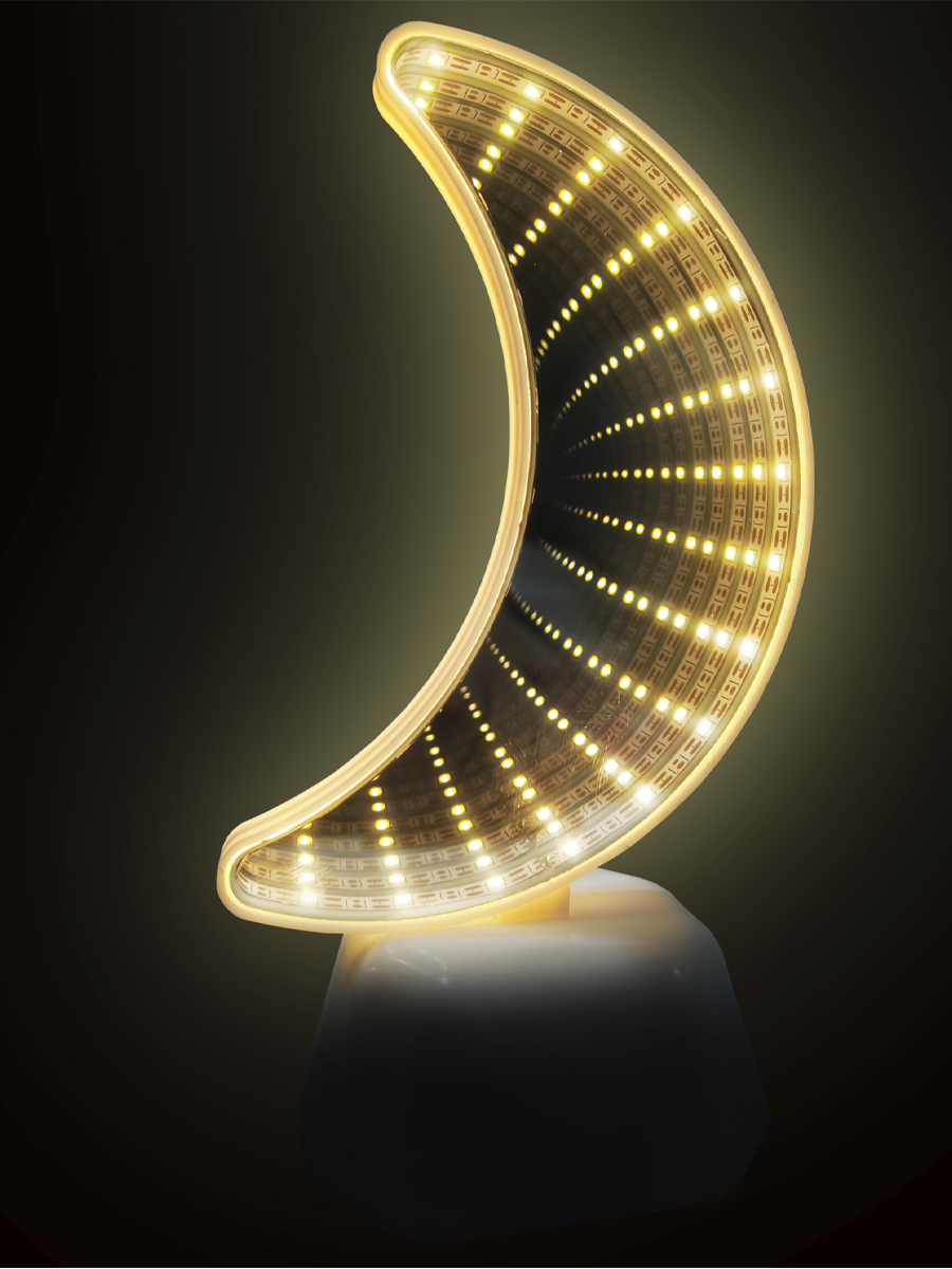 Ночник 3хАА Apeyron Месяц желтый зеркальный 100х70х190мм (1/24)