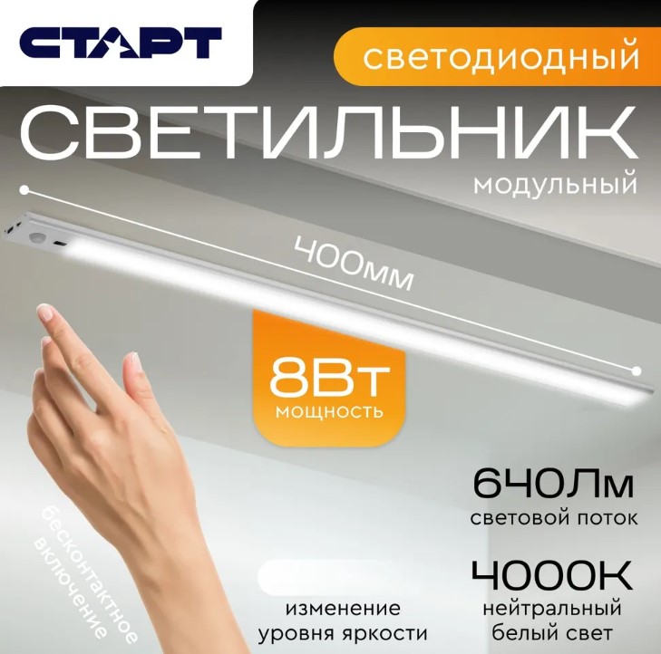 Светильник аккумуляторный Старт RECHARGE 8Вт 4000К 640Лм датчик 400х40х9мм (50)