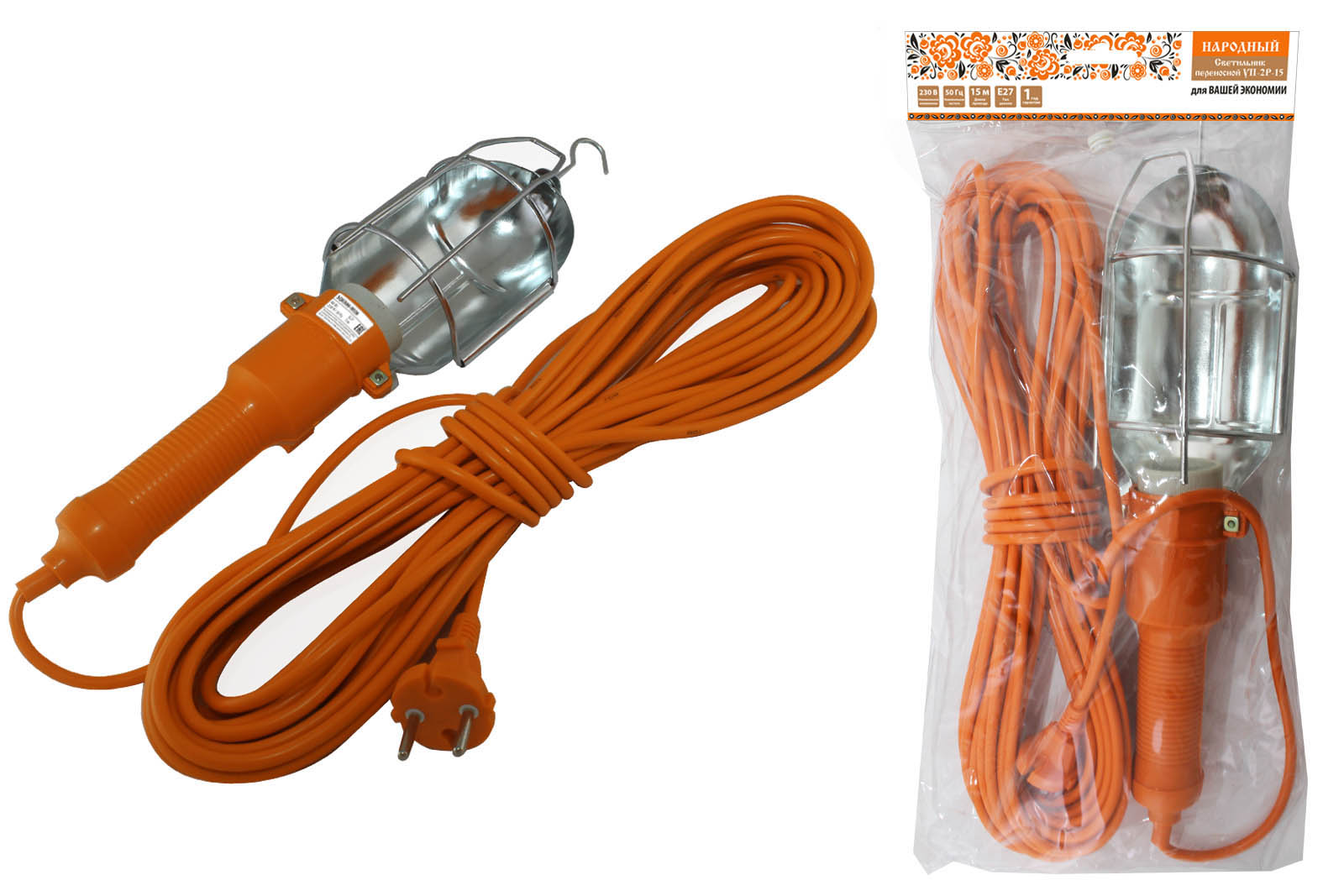Светильник переносной Е27 TDM УП-2Р-15 15м 60Вт решётка Народный (10)