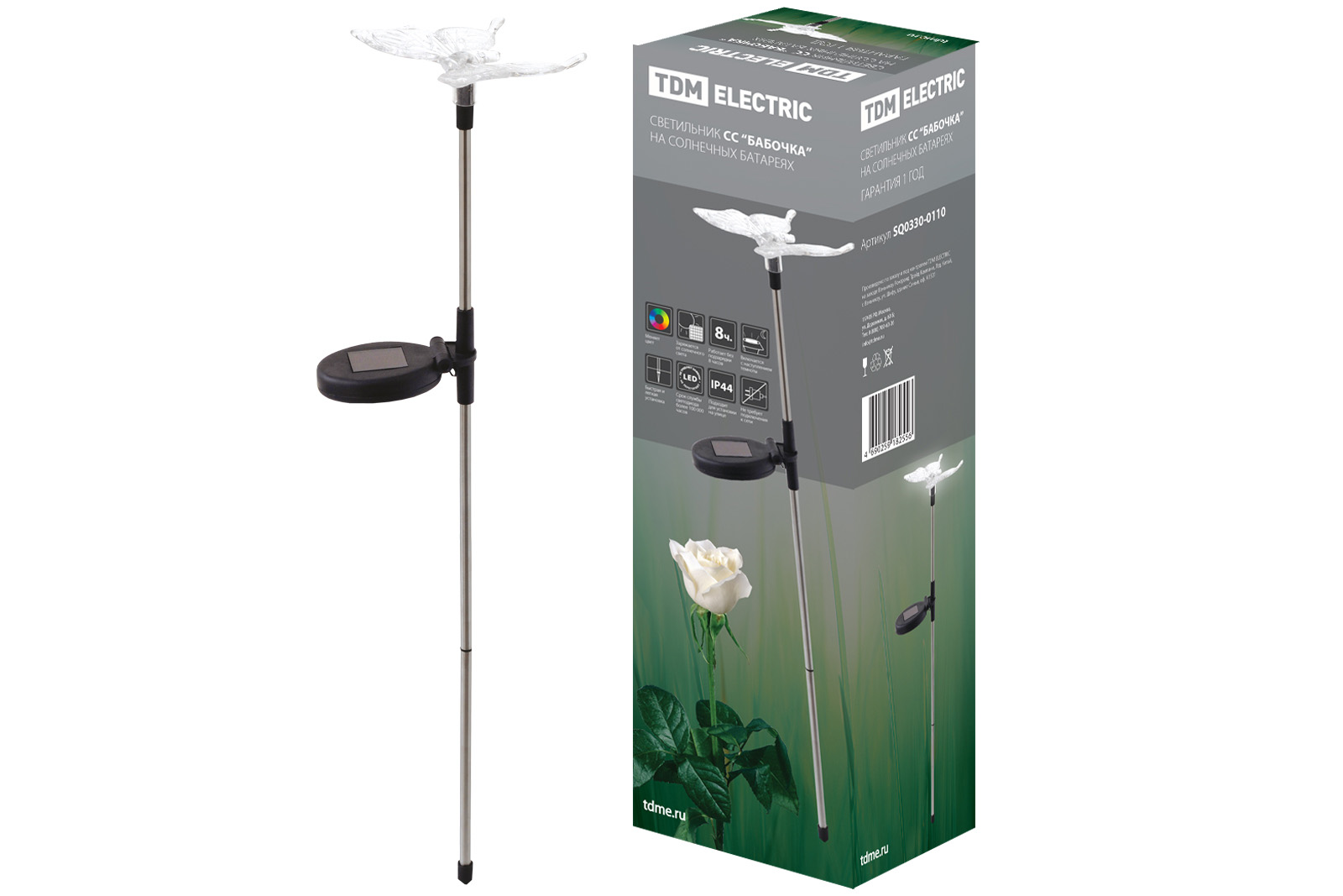 Светильник на солнечной батарее TDM СС Бабочка 1LED RGB сталь (12)