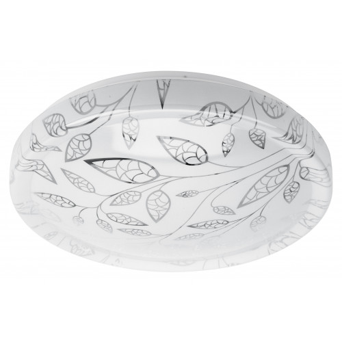Плафон LED люстры декорирован изящным узором. Нежные ветки с лепестками гармонично смотрятся на круглом плоском корпусе. Такой светильник прекрасно подойдет для оформления гостиной, коридора, спальни или детской.