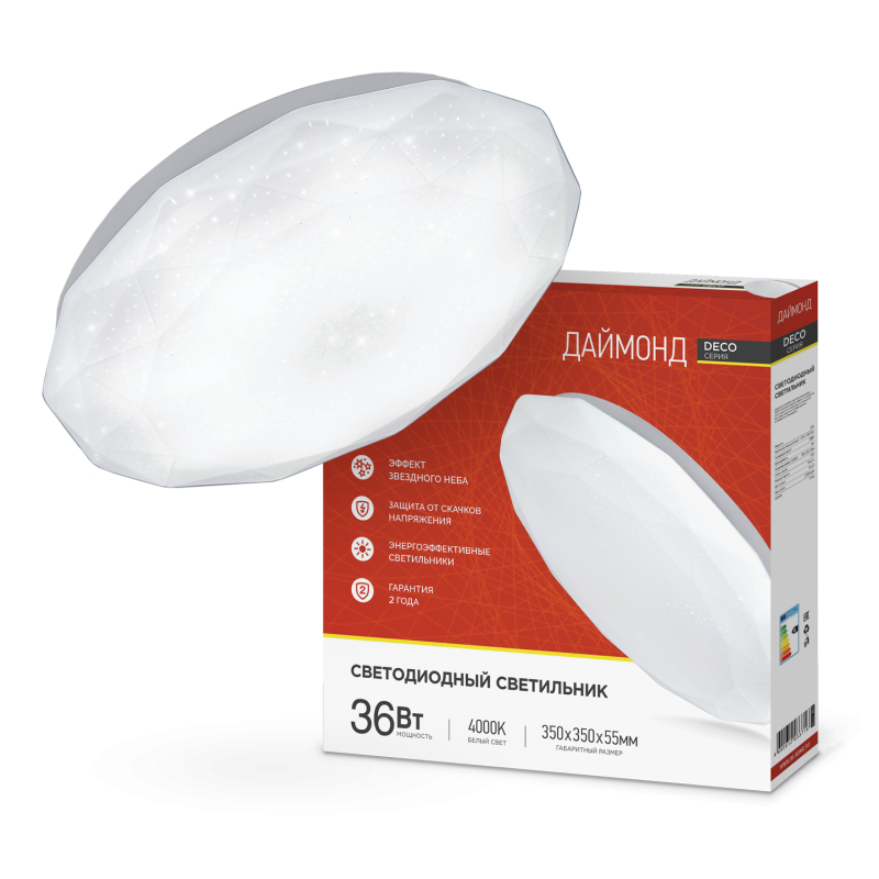 Светильник диодный InHome Deco ДАЙМОНД 36Вт D350x65мм 4000К IP40 2340Лм (20)