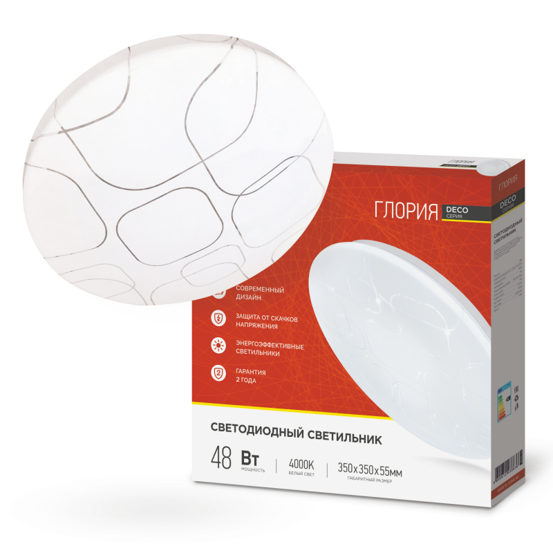 Светильник диодный InHome Deco Глория 48Вт d350х55мм 4000К IP40 3120Лм (10)