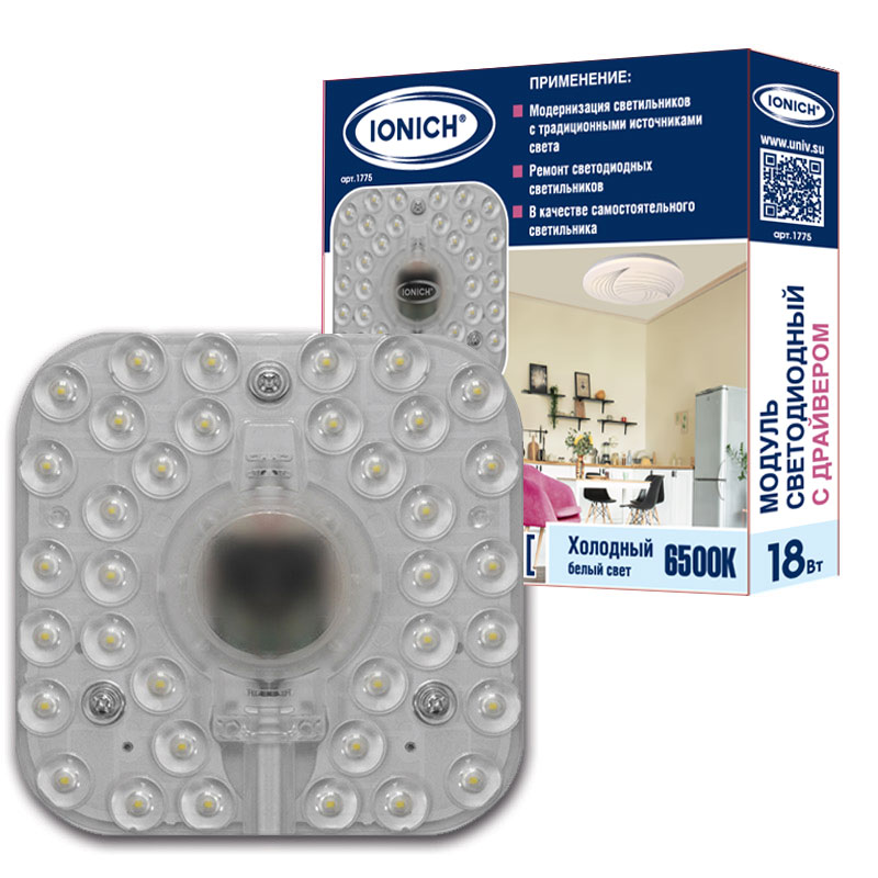 Модуль светодиодный для декоративных светильников ТМ IONICH 18 Вт 1440 Лм 230 В 6500 К 140х140 мм IP