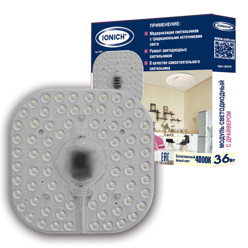 Модуль светодиодный для декоративных светильников ТМ IONICH 36 Вт 2880 Лм 230 В 4000 К 180х180 мм IP