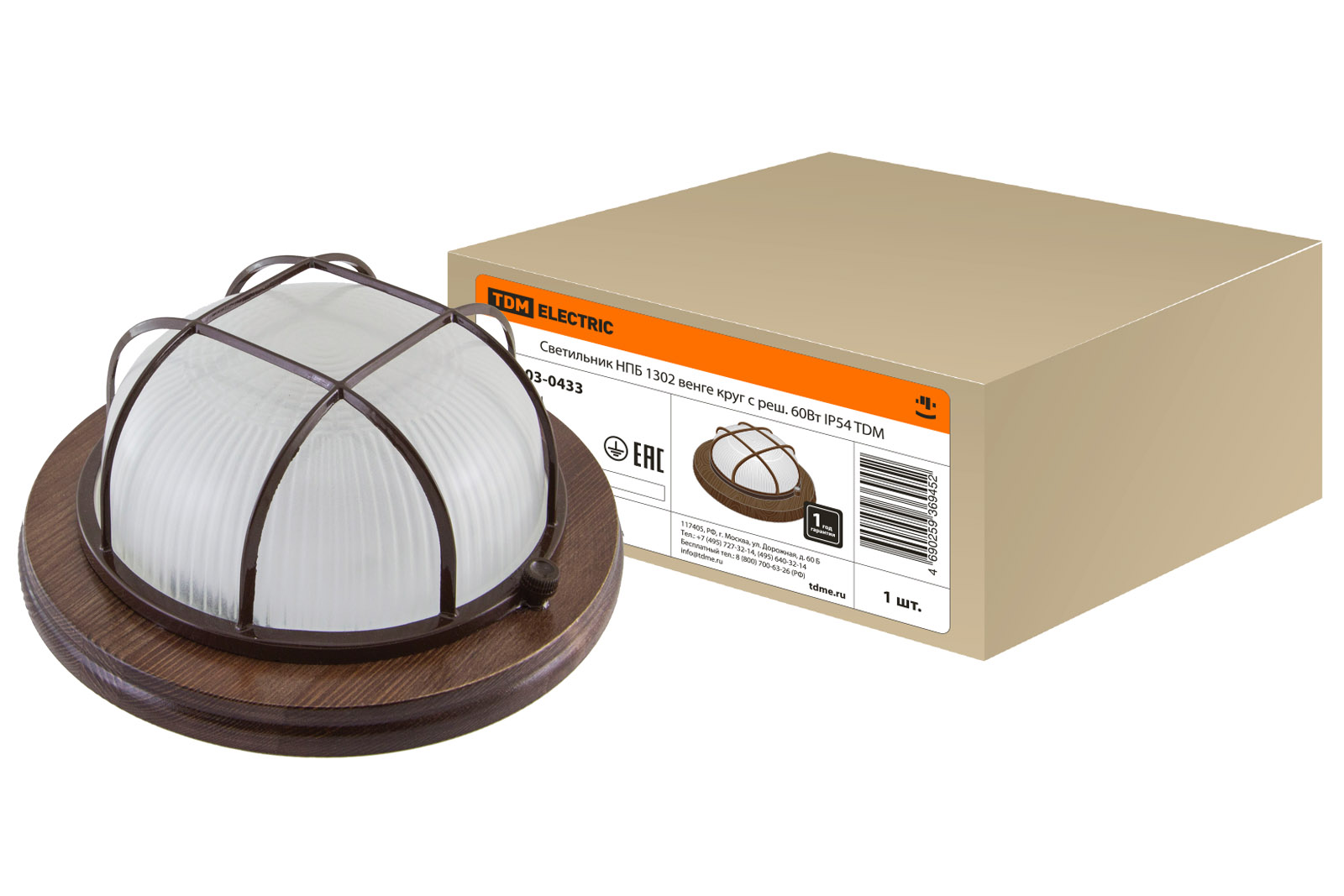 Светильник Е27 герметичный НПБ1302 60Вт D220x93мм IP54 решётка TDM венге (8)