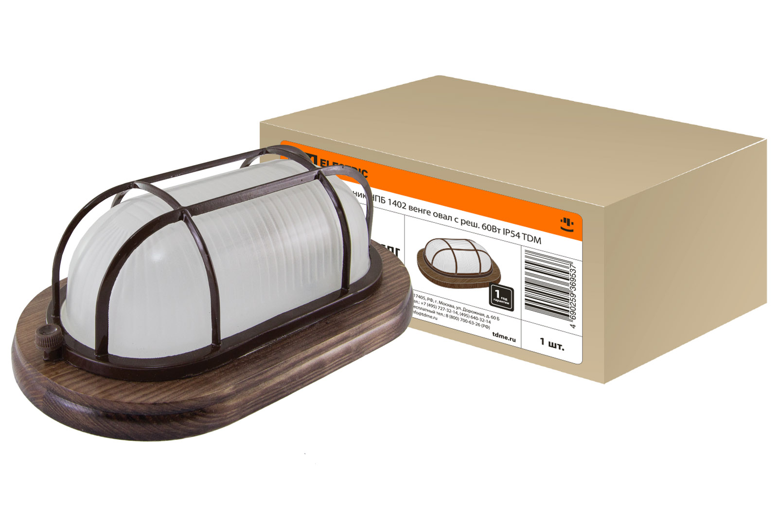Светильник Е27 герметичный НПБ1402 60Вт 232x145x88мм овал IP54 решётка TDM венге (8)