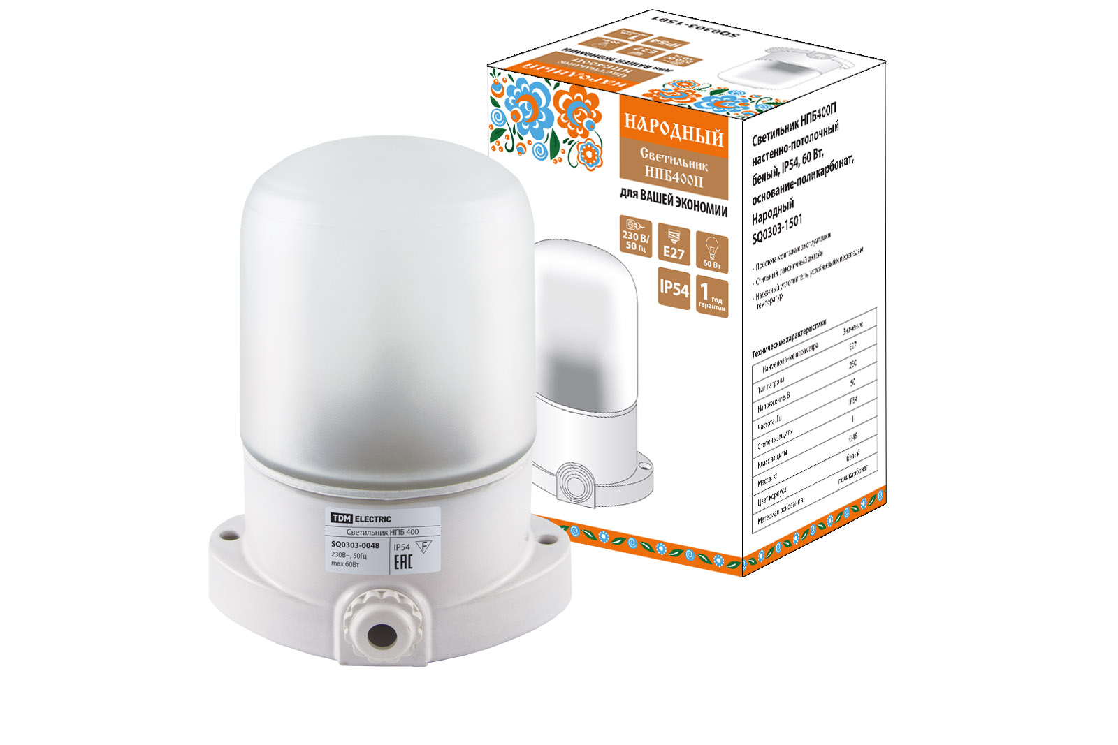 Светильник Е27 герметичный НПБ400П 60Вт 135x110мм IP54 настенный TDM Народный белый (16)