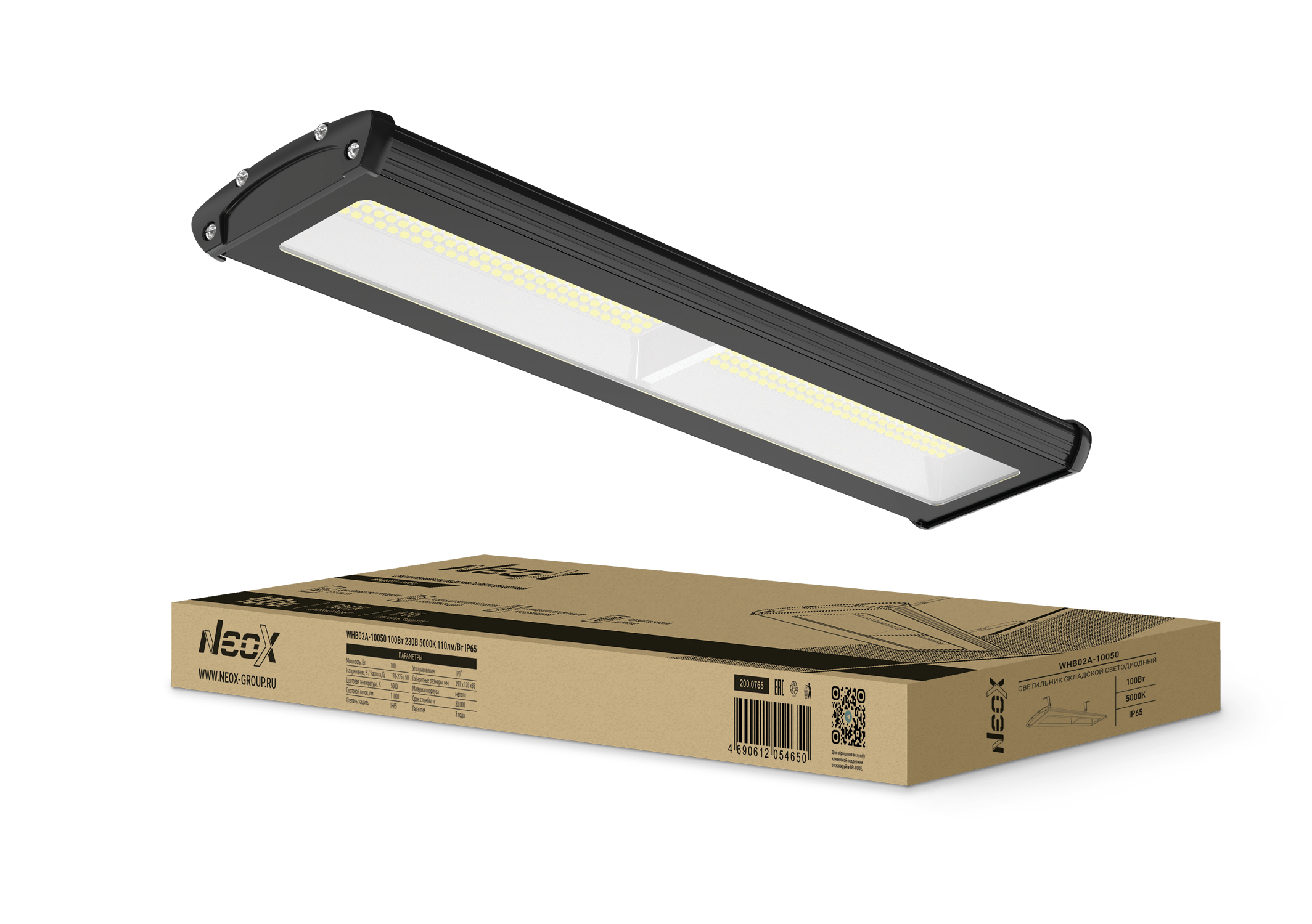 Светильник промышленный подвесной диодный Neox WHB02A 100Вт 5000К 11000Лм []491х120х35 IP65 без пульсации (10)