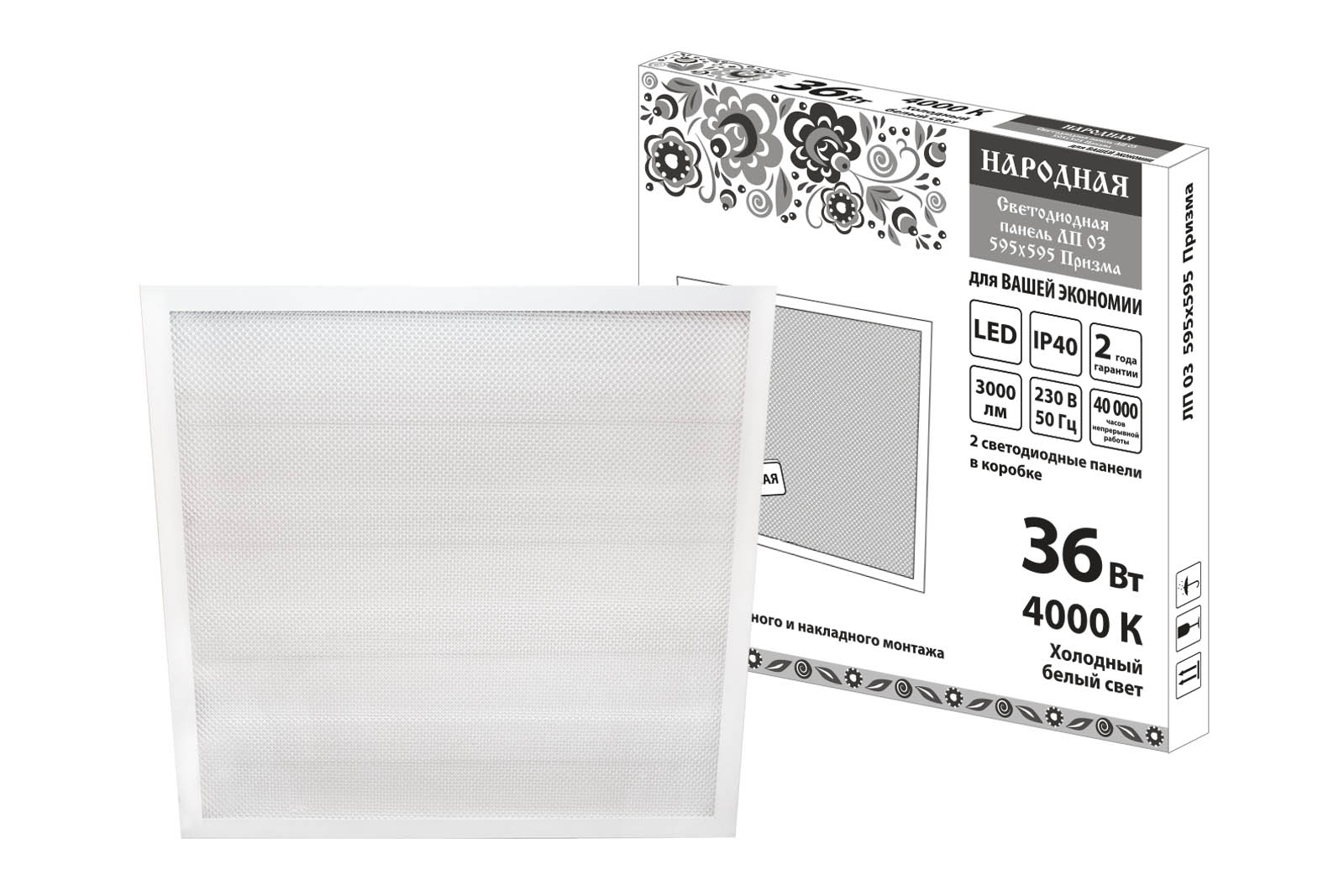 Панель универсальная ЛП 03 36Вт 4000К 595х595х19 IP20 3000Лм белая призма TDM Народная (4)