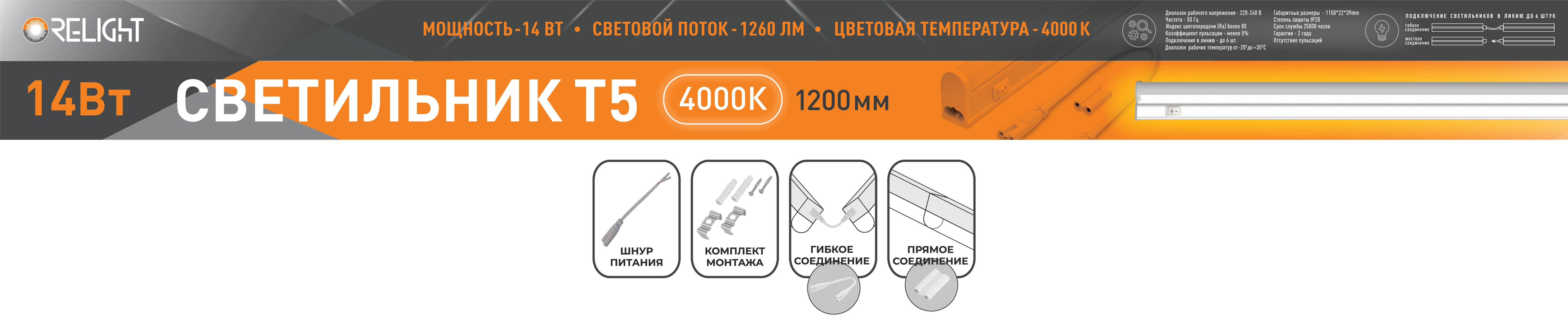 Светильник линейный Т5 14Вт 4000К 1200мм IP20 1260Лм Relight (25)