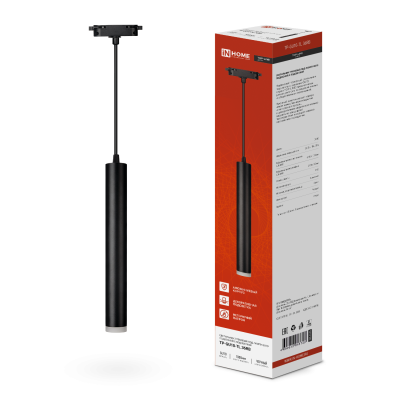 Светильник трековый InHome GU10 подвесной с подсветкой TP-GU10-TL 36RB черный (30)