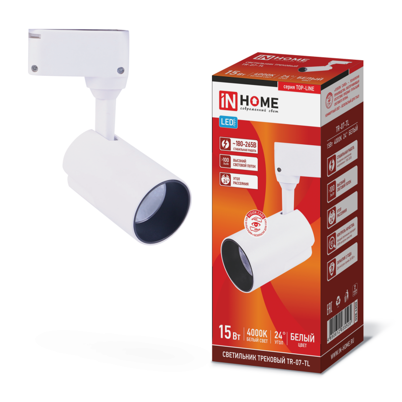 Светильник трековый Inhome TR-07-TL 15Вт 4000К 1500Лм белый