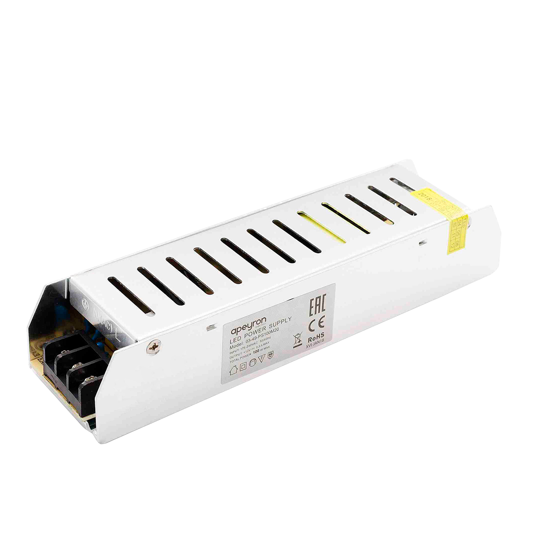 Драйвер 12В 100Вт IP20 185х40х32мм 8,3А Apeyron
