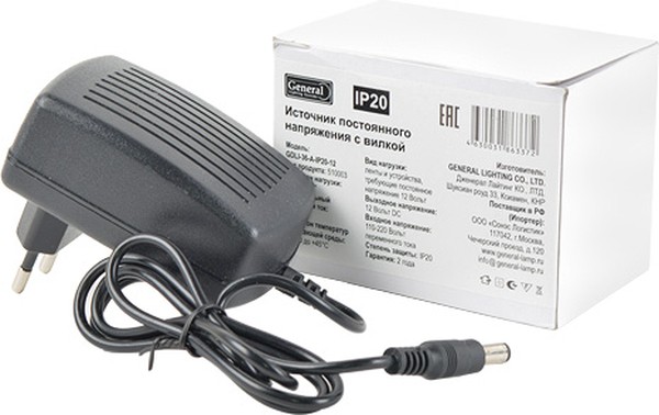Драйвер 12В 36Вт IP20 76х67х42мм General вилка jack 5.5мм (1)