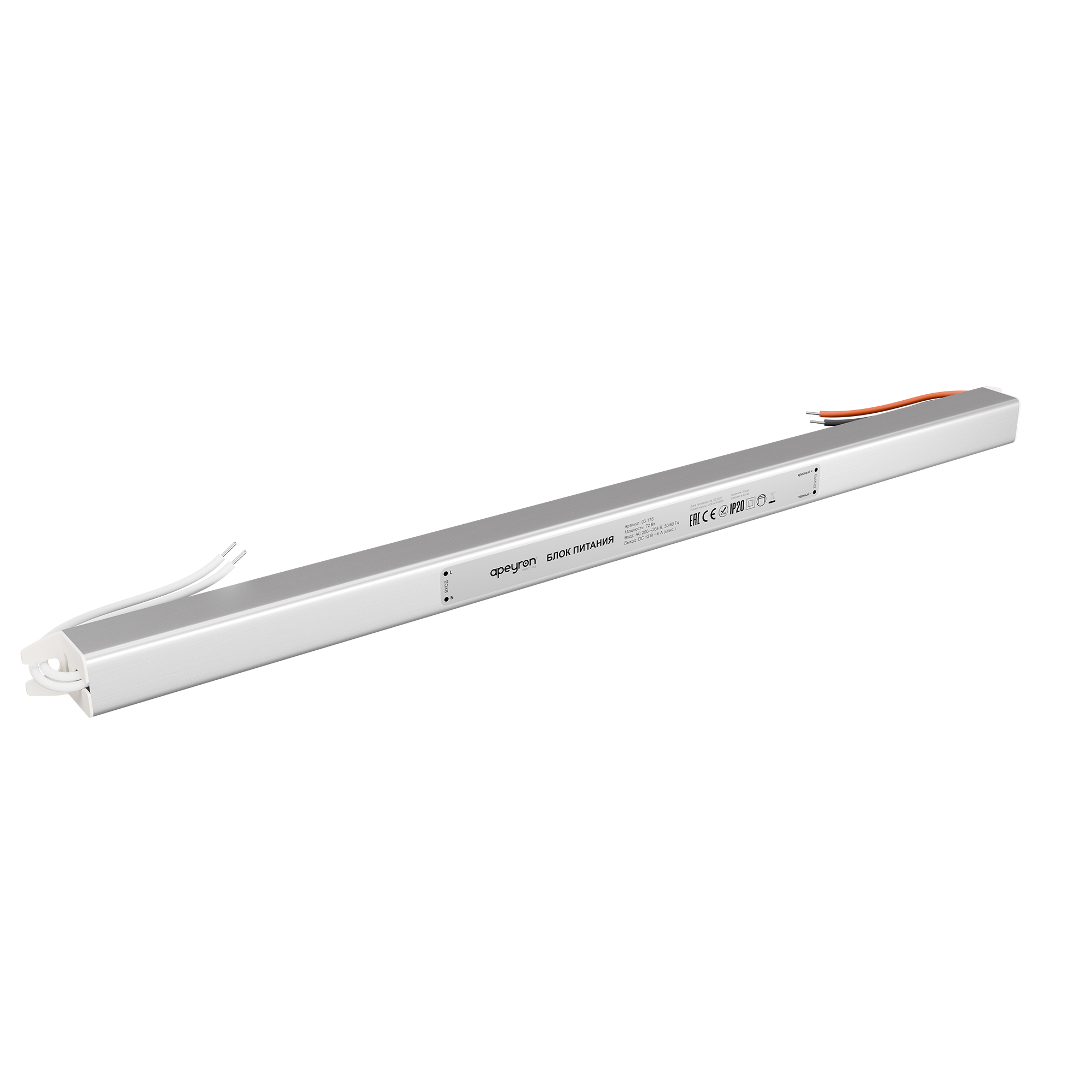 Драйвер 12В 72Вт IP20 377х18х18мм 6А Apeyron