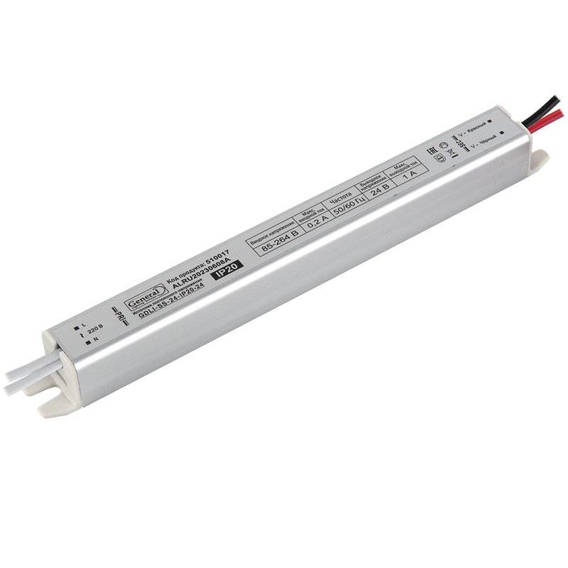 Драйвер 24В 24Вт IP20 170х18х18мм General