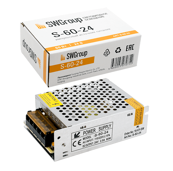 Драйвер 24В 60Вт IP20 110x78x36мм SWG (100)